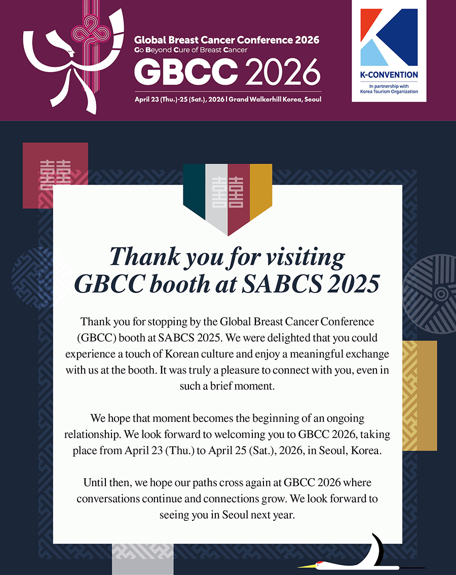 | 제목 | [GBCC 2026] Thank You for Visiting the GBCC Booth at SABCS 2025 |